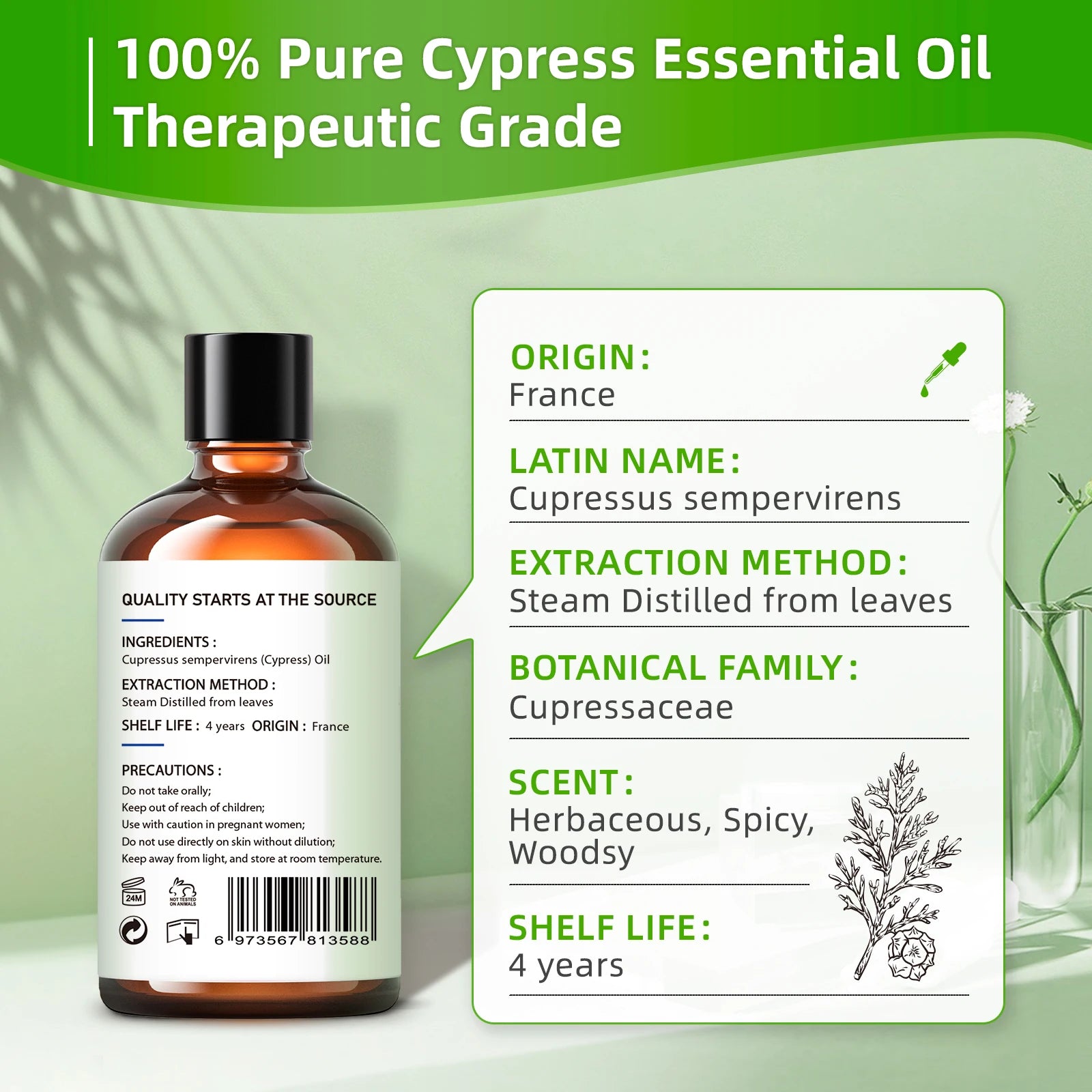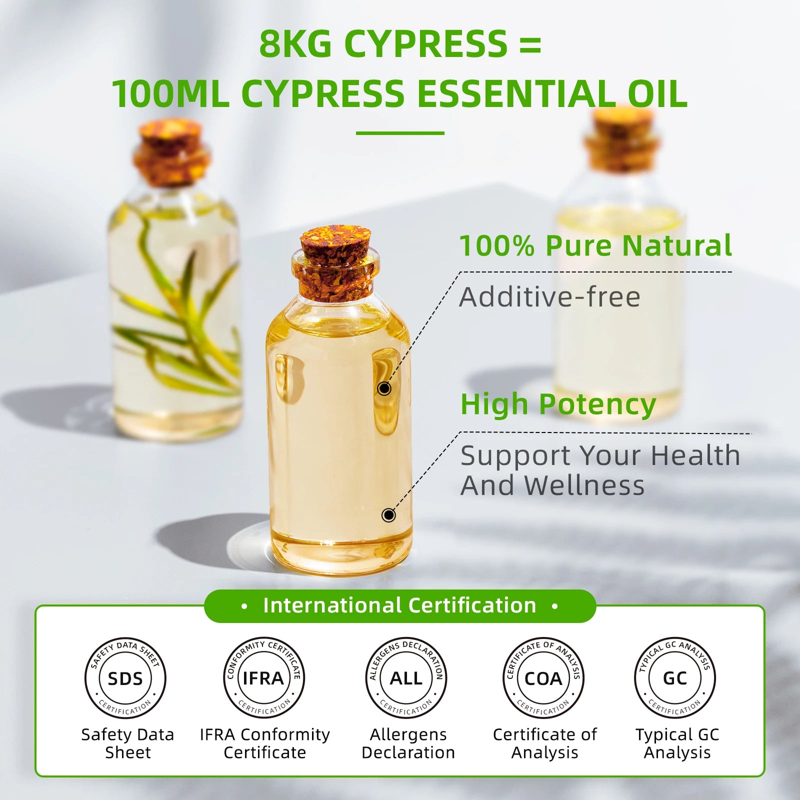 Cypress essential oil has a fresh scent of turpentine and quaint woody spices. This unique taste makes people who have been seduced.
